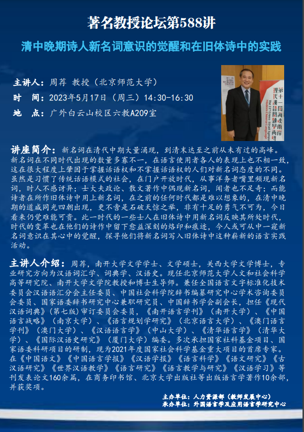 著名教授論壇第588講:清中晚期詩人新名詞意識的覺醒和在舊體詩中的實踐