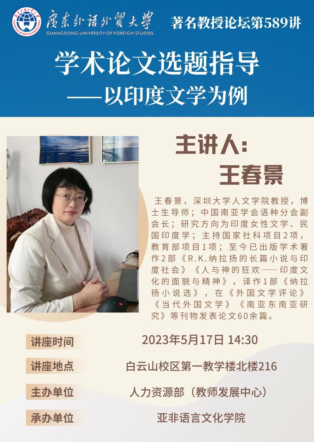 著名教授論壇第589講:學(xué)術(shù)論文選題指導(dǎo)——以印度文學(xué)為例