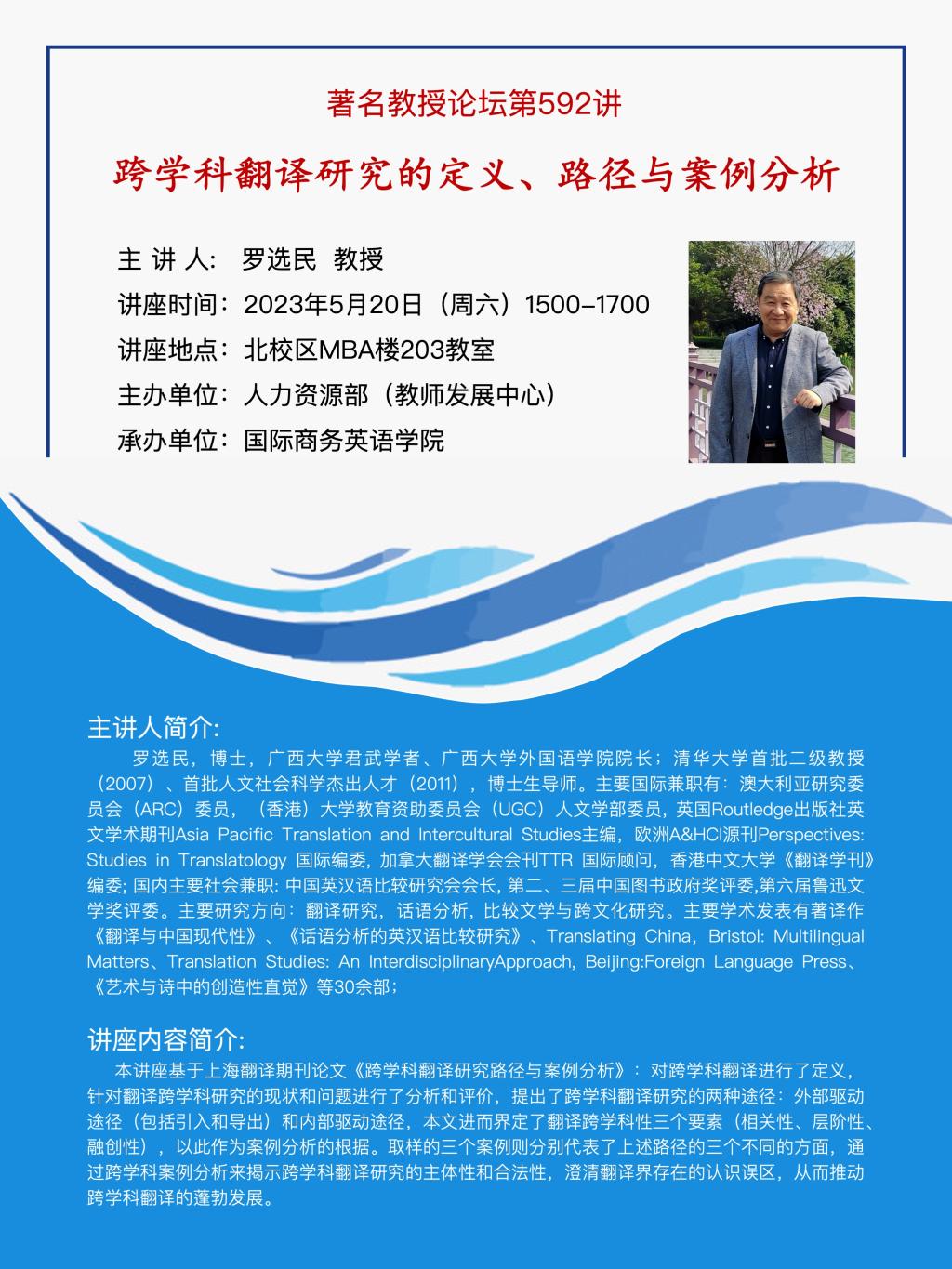 著名教授論壇第 592講跨學(xué)科翻譯研究的定義、路徑與案例分析