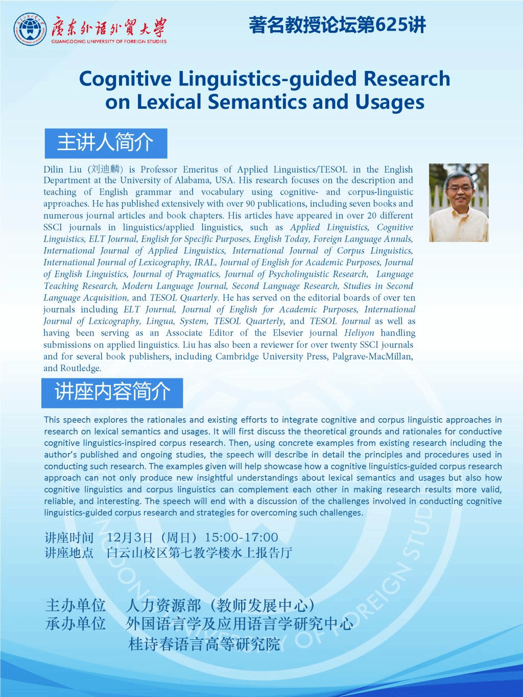 著名教授論壇第625講:認(rèn)知語(yǔ)言學(xué)指導(dǎo)下的詞匯語(yǔ)義和用法語(yǔ)料庫(kù)研究