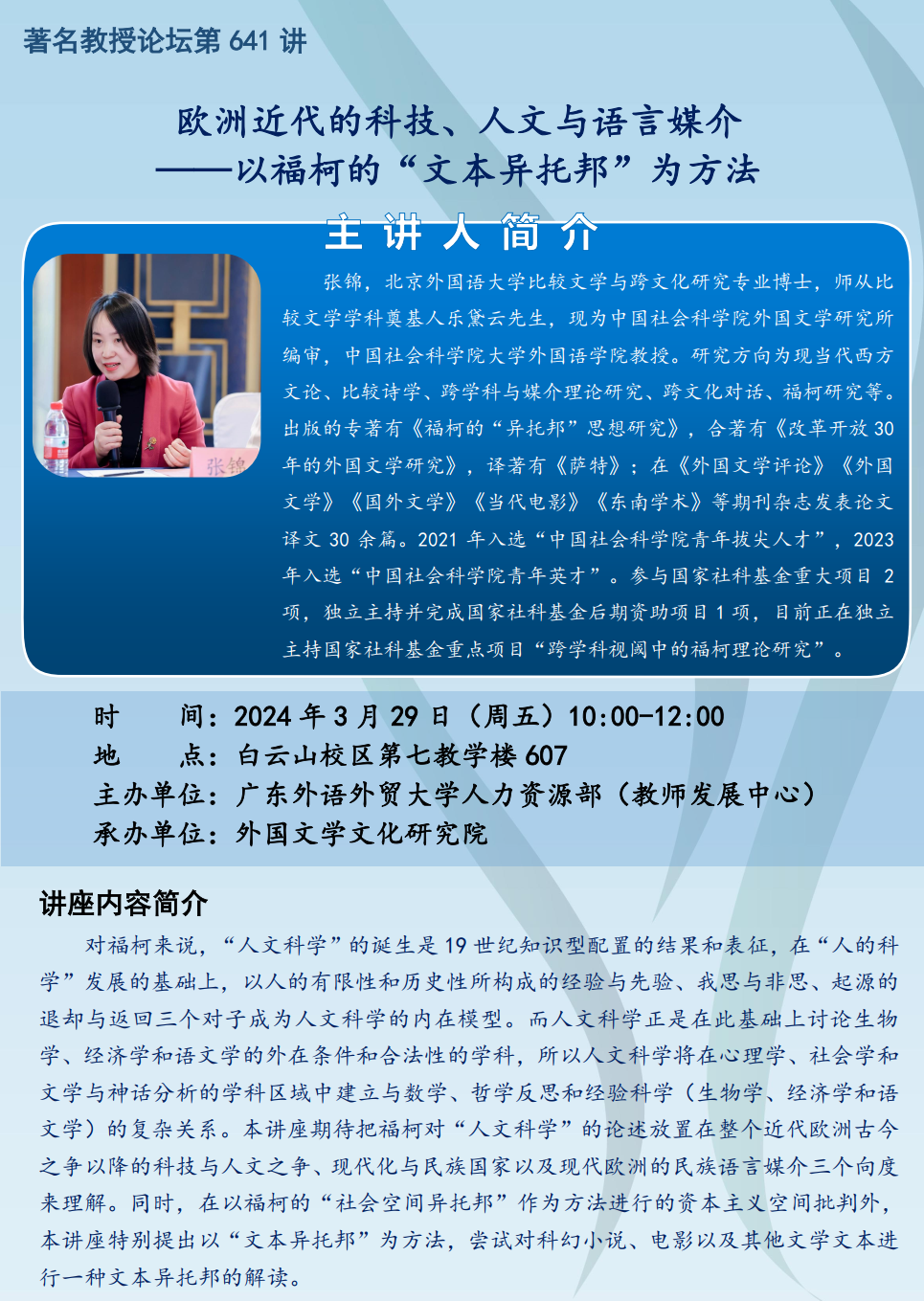 著名教授論壇第641講:歐洲近代的科技、人文與語言媒介——以福柯的“文本異托邦”為方法