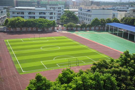 改造前,小學田徑場旁有一塊雜草叢生的廢棄用地,那里經常有老鼠、蛇等動物出沒,而小學田徑場又是小學部舉辦各項活動的重要用地,閑置廢棄用地,不僅浪費了教學用地資源,也給師生們的安全帶來一定隱患。因此,此次改造將田徑場旁的空地改成硅PU地面運動場,同時在運動場的南面搭建鋼架雨棚、人行道,方便鍛煉的師生,并把田徑場的天然草地換為人造草地?!靶W田徑場看起來確實比原來整潔多了,場地也大了?!甭愤^的老師禁不住感嘆。