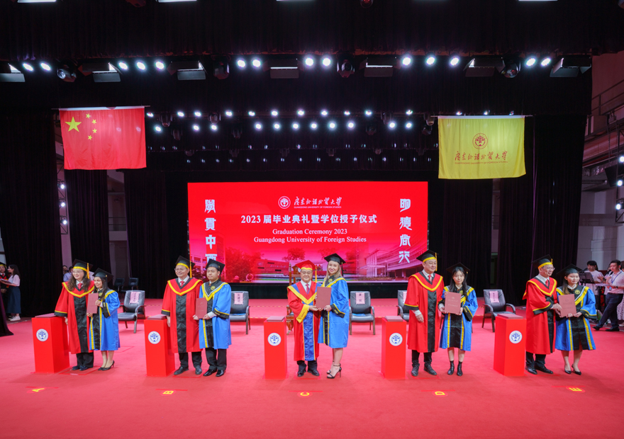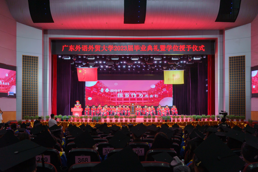 6月18日上午,2023屆畢業(yè)典禮暨學位授予儀式在白云山校區(qū)云山會堂舉行,2023屆7293名廣外畢業(yè)生將從這里揚帆遠航。校黨委書記、校長石佑啟,校領導、主禮教授為畢業(yè)生們撥穗正冠、頒發(fā)學位證書,勉勵畢業(yè)生們勇?lián)鷷r代使命,奮楫揚帆遠航。為讓更多師生校友一起見證2023屆畢業(yè)生的美好時刻,本次畢業(yè)典禮采用“線下+云端”“主會場+分會場”相結合的方式同步進行。畢業(yè)典禮線上直播觀看量達5萬人次,獲點贊超13萬次。