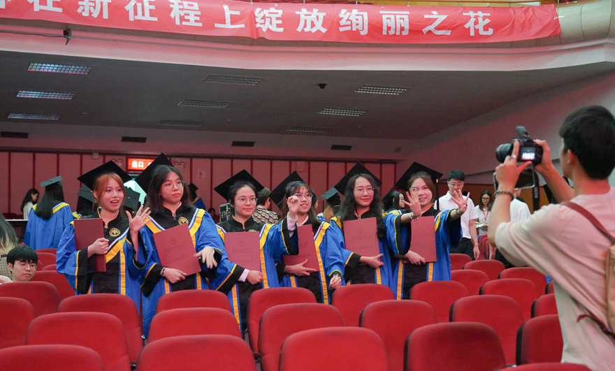商英學院碩士畢業(yè)生童彥儒表示,轉眼三載春秋,在廣外收獲了難忘的經(jīng)歷與個人的成長,祝福畢業(yè)生們在各自的人生旅程中共同努力,不斷超越不斷成長,祝愿母校發(fā)展越來越好。藝術學院本科畢業(yè)生左緹竹談到,畢業(yè)意味著大學時代的結束,但不意味著學習生涯的終結,未來還有更多的人和事值得我們期待。我們在夏天遇見也將在夏天告別,即將踏入新的旅途,祝愿同學們前途似海,來日方長。留學生院畢業(yè)生李素月表示,她會懷念走進粵北鄉(xiāng)村了解中國鄉(xiāng)村振興的那個夏天,也會懷念走進企業(yè)參觀的秋天,更會懷念與同學們度過的每一天。她相信,無論是走上工作崗位還是繼續(xù)深造,畢業(yè)生們都將以最飽滿的熱情勇敢地面對各種挑戰(zhàn)。
