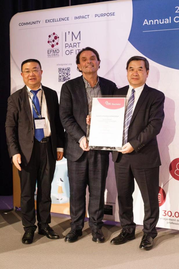 焦方太一行出席了在里昂舉辦的歐洲管理發展基金會(European Foundation for Management Development,簡稱EFMD)年會,深入了解了管理教育國際認證體系的發展趨勢及最新要求,同與會的國外部分高校代表進行了深入交流,探索國際合作新途徑。焦方太代表學校接受了EFMD授予的工商管理本科專業國際認證證書。