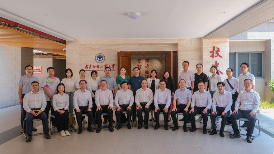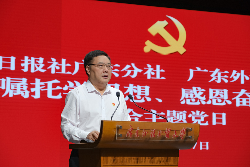 本網(wǎng)訊 6月27日,我校黨委組織黨員干部、師生黨員代表與人民日報(bào)社廣東分社聯(lián)合開展以“牢記囑托學(xué)思想、感恩奮進(jìn)鑄忠誠——提升國際傳播能力、講好中國故事”為主題的黨日活動,共同學(xué)習(xí)貫徹習(xí)近平總書記關(guān)于提升國際傳播能力的重要論述精神,交流向世界講好中國故事的經(jīng)驗(yàn)與探索。省委第二十巡回指導(dǎo)組副組長馬揚(yáng)州蒞臨指導(dǎo)。我校黨委書記、校長石佑啟,人民日報(bào)社廣東分社社長、黨總支書記陳偉光分別致辭。活動在我校白云山校區(qū)六教報(bào)告廳舉行。