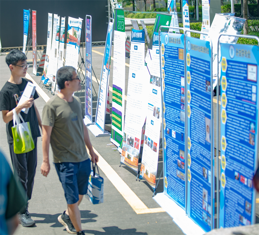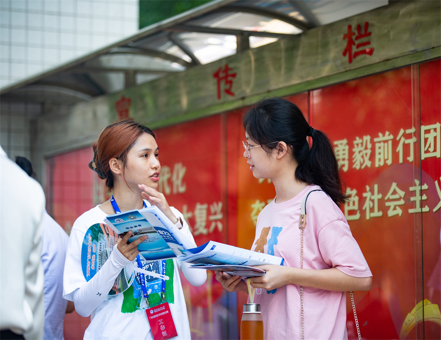 本網(wǎng)訊 相約大學(xué)城,賞夏日廣外。6月27日,我校2023年“校園開放日”活動在大學(xué)城校區(qū)開展。大學(xué)城校區(qū)教學(xué)樓架空層兩側(cè)設(shè)立招生答疑區(qū),考生和家長們來到廣外,沉浸式體驗校園環(huán)境和廣外風(fēng)采。