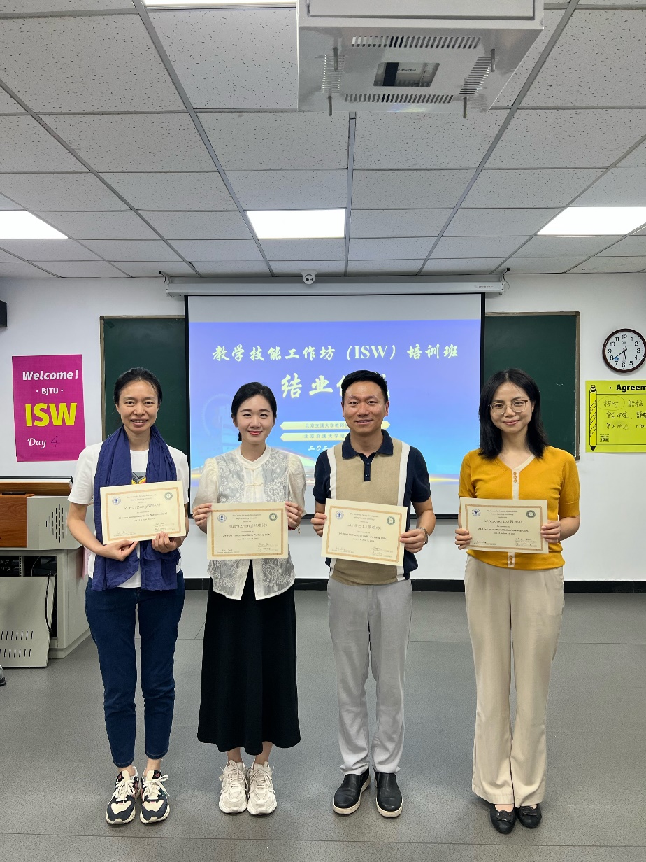 本網訊 近日,為探索教師教學技能培訓的新路徑,構建高質量、體系化的教師發展培訓專家隊伍,助力更新教育教學理念,有效提升教師尤其是青年教師的教學能力和教學質量,我校教師教學培訓專家首批隊伍參加了由加拿大ISW國際認證組織授權北京交通大學教師發展中心組織的ISW(Instructional Skills Workshop)教學技能國際認證培訓。4名教師均獲得國際認證證書。