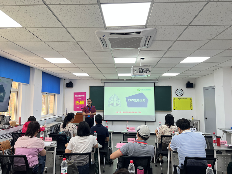 本次培訓由我校教師發展中心教師咨詢與指導部、教師發展與學習部部長鄭煜詩帶隊,英語教育學院副教授呂琳瓊、商學院副教授曾馭然、新聞與傳播學院副教授李峻嶺全程參加。ISW教學技能國際認證培訓以BOPPPS有效教學模式為核心理念,以合作學習小組為單位,開展互助式、研討式的集中研修,通過系列主題課程和三輪迷你微格教學演練循環使參訓教師逐步加深對教育教學理論的深度理解以及教學技能、策略的靈活運用,提升參訓教師的教學自信和教學反思能力。迷你微格教學演練中,參訓教師每天在“教師”和“學生”的兩種角色中不停轉換,反復多輪進行教學設計、教學演練、教學觀摩、同伴回饋和指導教師評價。參訓教師通過拆解在迷你微格教學演練中出現的問題與原因進行教學反思與教學優化,學會有效分析學情,聚焦學習目標,熟練掌握BOPPPS有效教學結構,實現教學意識、教學設計與教學實施能力的提升,同時增強其擔任教學者的能力與自信,成為更具反思能力的教學實踐者。來自北京交通大學的4位專家作為引導員全程引導協助,帶領參訓教師在小組中彼此呈現迷你微格教學,互相觀摩交流,相互鼓勵并提供有效反饋建議,極大提升了參訓教師的教學技能,增進了教學效能。