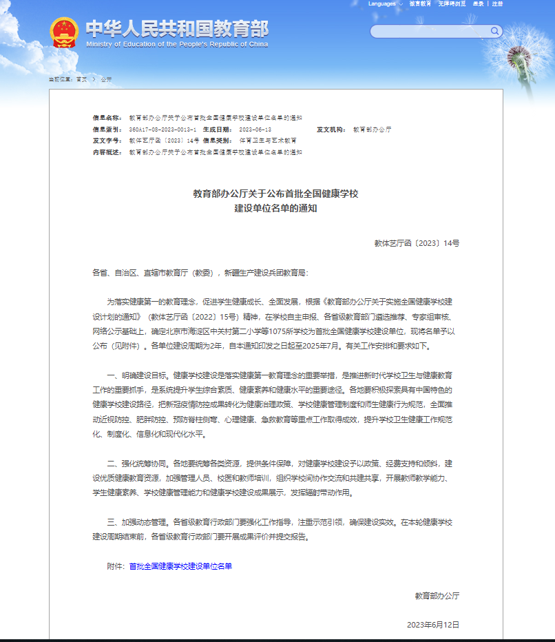 本網(wǎng)訊 近日,教育部辦公廳公布首批全國(guó)健康學(xué)校建設(shè)單位,我校名列其中。