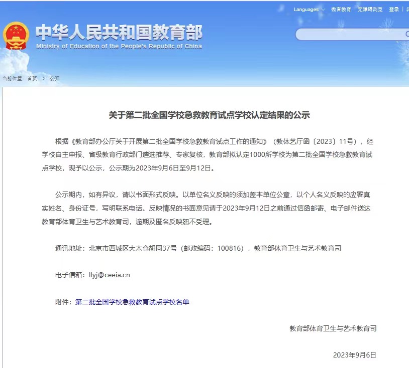 本網訊 近日,教育部公示第二批全國學校急救教育試點學校認定結果,我校名列其中。本次認定結果,是我校繼今年6月份獲批全國首批健康學校建設單位之后在全國教育系統公共衛生領域取得的又一項榮譽。