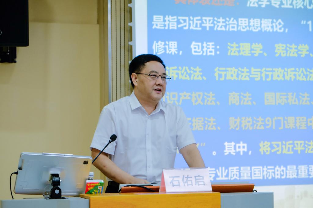 石佑啟強調,習近平法治思想是順應實現中華民族偉大復興時代要求應運而生的重大理論創新成果,是引領新時代法治建設的思想旗幟。深入學習貫徹習近平法治思想是一項長期重大的政治任務,必須持續推進、不斷深化,持之以恒、久久為功。他勉勵廣外學子自覺做習近平法治思想的忠實信仰者、模范實踐者、積極傳播者、堅定捍衛者,堅守法治初心、增強法治自信、強化法治擔當、奮力開拓中國特色社會主義法治道路的廣闊前景,努力譜寫新時代全面依法治國的新篇章。