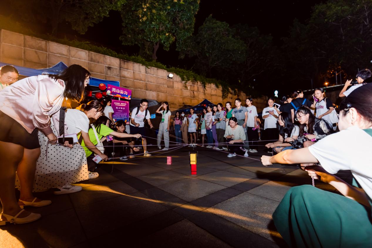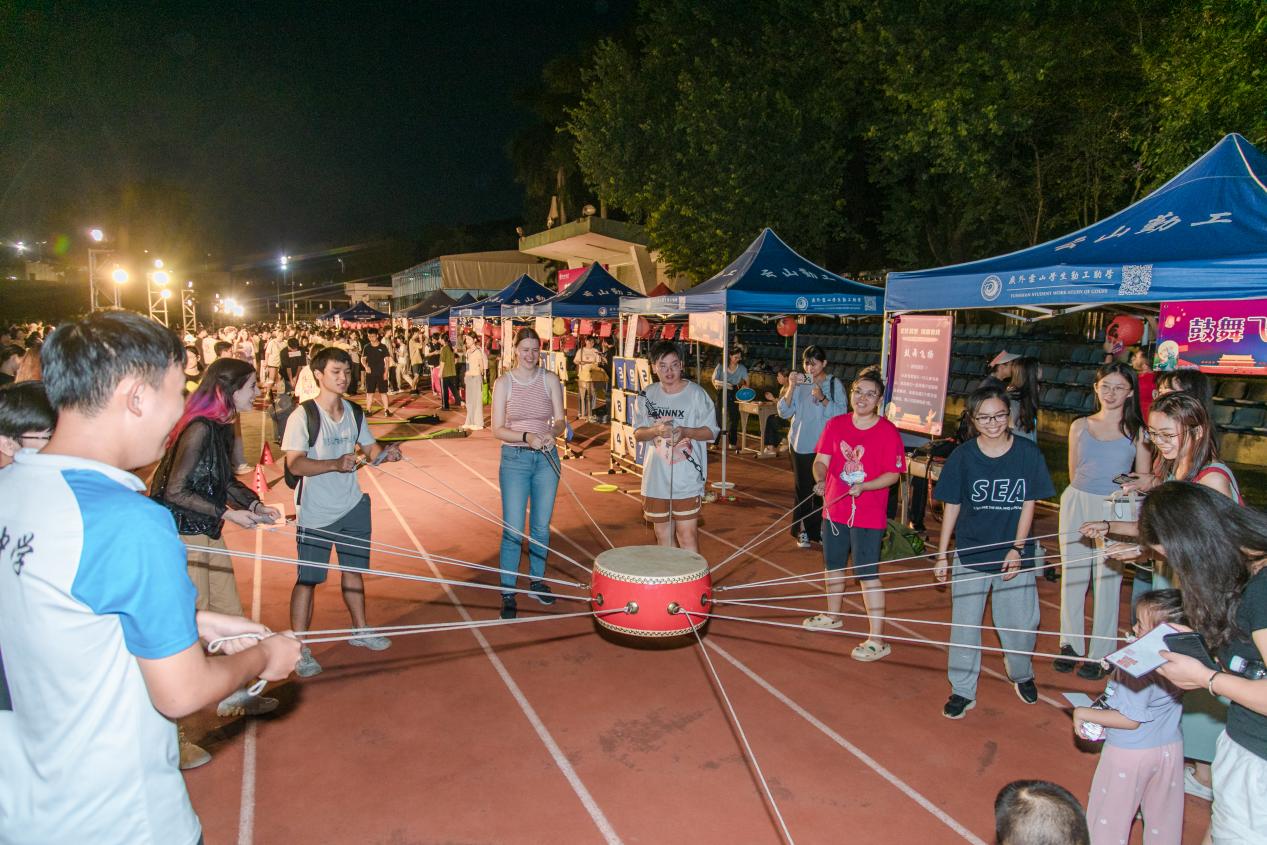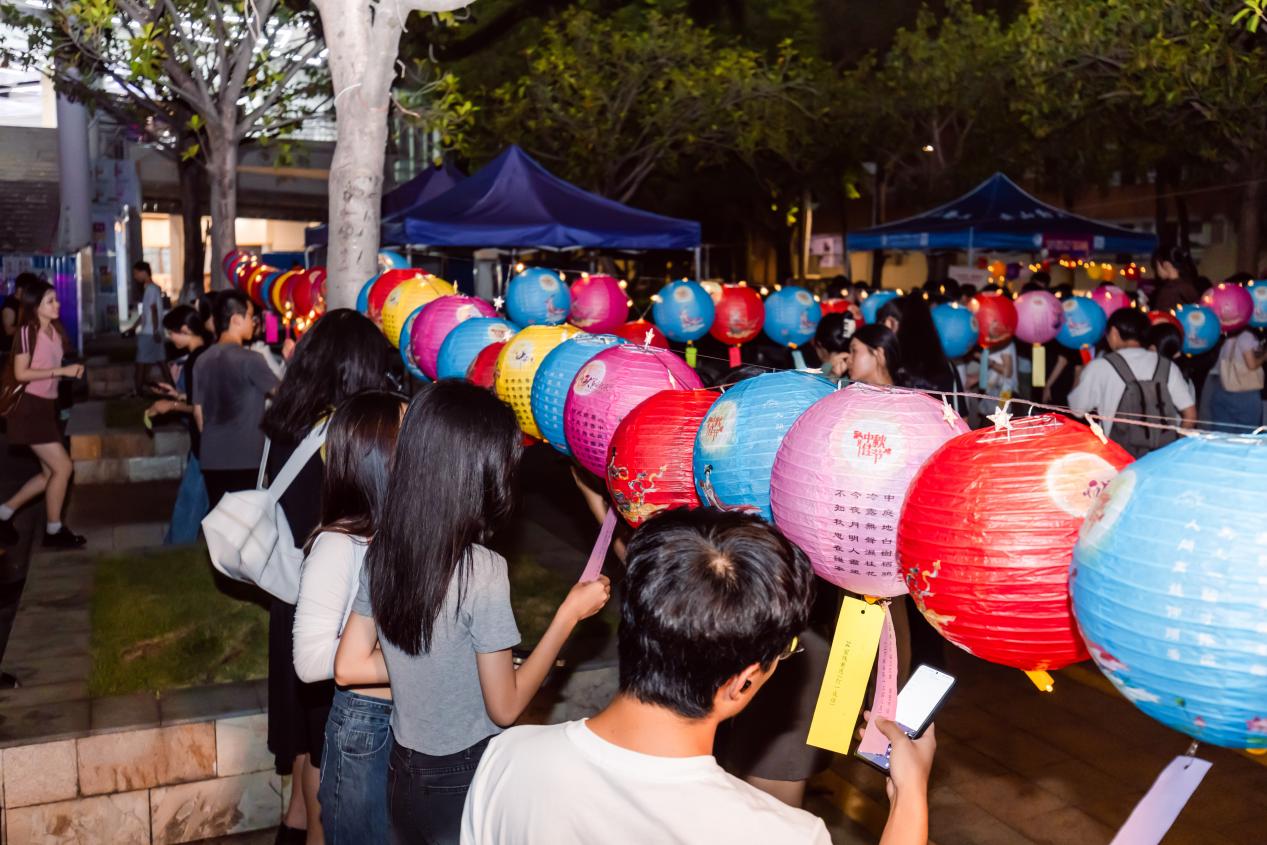 本網(wǎng)訊 一輪金黃月灑滿團圓情,一片中國紅盈滿愛國心。9月26日,白云山校區(qū)、大學(xué)城校區(qū)和知識城校區(qū)同步舉行以“文化筑夢,強國有我”為主題的“賀中秋·迎國慶”游園活動,三校區(qū)八千余人參加活動。活動設(shè)置傳統(tǒng)文化體驗、嶺南文化主題展覽及趣味游戲活動、學(xué)生展演等多種內(nèi)容,融合書法、詩歌、漢服、繩結(jié)、燈籠、扇子等中華優(yōu)秀傳統(tǒng)文化元素,打造了一場有趣又有料的精彩文化盛宴。