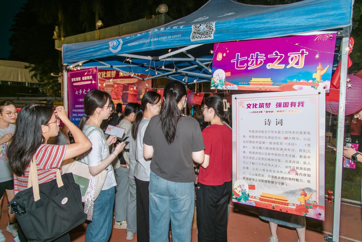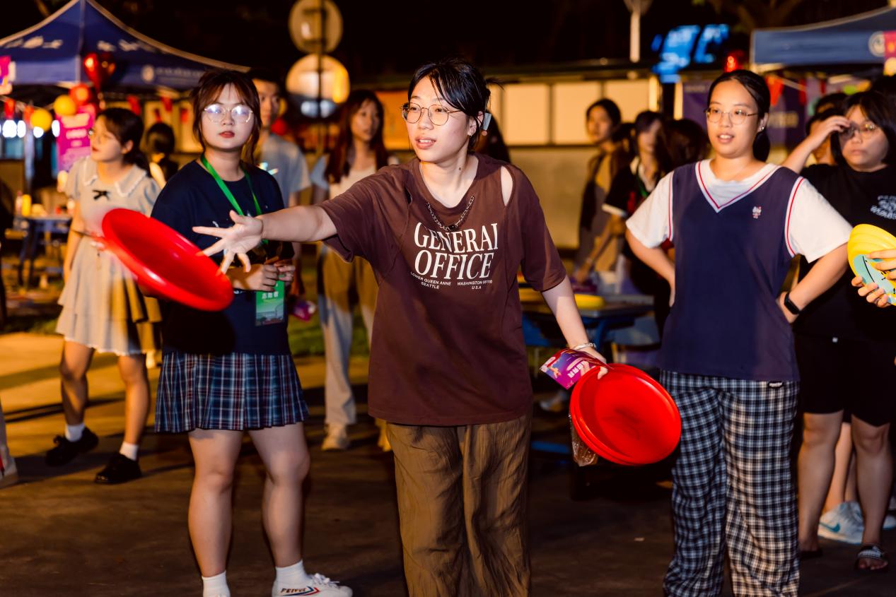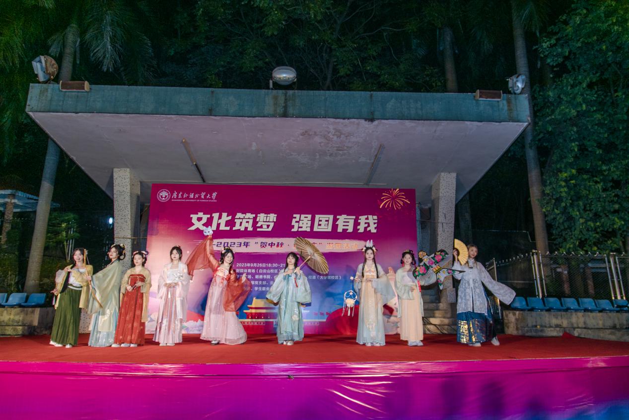 本網(wǎng)訊 一輪金黃月灑滿團圓情,一片中國紅盈滿愛國心。9月26日,白云山校區(qū)、大學(xué)城校區(qū)和知識城校區(qū)同步舉行以“文化筑夢,強國有我”為主題的“賀中秋·迎國慶”游園活動,三校區(qū)八千余人參加活動。活動設(shè)置傳統(tǒng)文化體驗、嶺南文化主題展覽及趣味游戲活動、學(xué)生展演等多種內(nèi)容,融合書法、詩歌、漢服、繩結(jié)、燈籠、扇子等中華優(yōu)秀傳統(tǒng)文化元素,打造了一場有趣又有料的精彩文化盛宴。