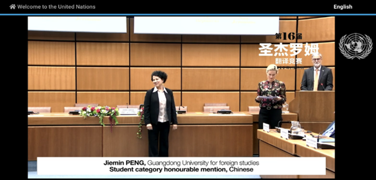 第16屆聯(lián)合國圣杰羅姆翻譯競賽頒獎典禮截圖