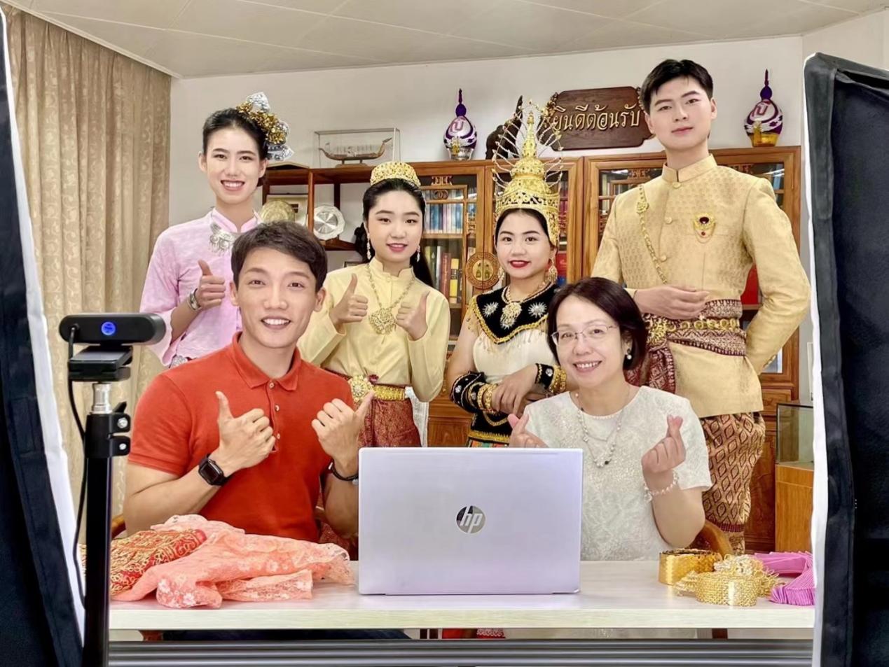 語言的魅力是巨大的,在達意的同時還可以傳情,在通事的同時還可以通心。在日常教學中,蘇皖信強調懂語言、通社會,懂文化,要求學生掌握在各種社交場合的跨文化交際技巧。同時,他的教學強調實踐技能,例如,旅游泰語課程中,學生不僅有課內的VR綠幕實踐講解,還會走出校園,進行實地講解。每周四下午,蘇皖信都會在泰國文化室定期舉行聽歌學泰語、泰國影視劇賞析、泰國服飾文化體驗、泰國傳統舞蹈學習、泰國禮儀小講堂等等泰國文化實踐活動。舉辦這些文化實踐活動,旨在加深學生對語言背后的泰國社會文化、風土人情、習俗習慣的理解與認識,掃除跨文化交際中的文化障礙,特別是語言背后的民族文化、價值觀念、思維方式等因素。