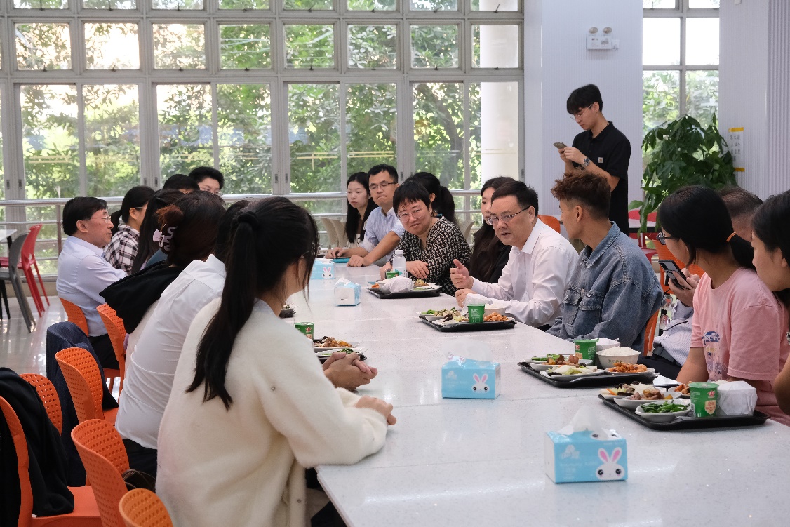 調(diào)研走訪結(jié)束后,石佑啟在第二飯?zhí)门c11名學(xué)生代表共進(jìn)午餐并進(jìn)行了親切交談,關(guān)心學(xué)生學(xué)習(xí)生活情況,傾聽(tīng)?zhēng)熒穆暋J訂⒐膭?lì)同學(xué)們積極為學(xué)校辦學(xué)提出有益建議,廣泛參與到學(xué)校事業(yè)發(fā)展大局,共同推動(dòng)學(xué)校建設(shè)與發(fā)展。