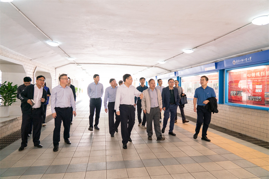 本網(wǎng)訊 10月23日上午,為促進(jìn)廣大黨員、干部特別是領(lǐng)導(dǎo)干部帶頭深入調(diào)查研究,推動(dòng)學(xué)校事業(yè)高質(zhì)量發(fā)展,校黨委書(shū)記石佑啟帶隊(duì)在大學(xué)城校區(qū)開(kāi)展調(diào)查研究工作。校黨委副書(shū)記李云明,副校長(zhǎng)劉海春參加調(diào)研。黨辦校辦、宣傳部、保衛(wèi)部、學(xué)生工作部、校團(tuán)委、總務(wù)后勤部、基礎(chǔ)建設(shè)部、圖書(shū)館等相關(guān)單位負(fù)責(zé)人參加調(diào)研。