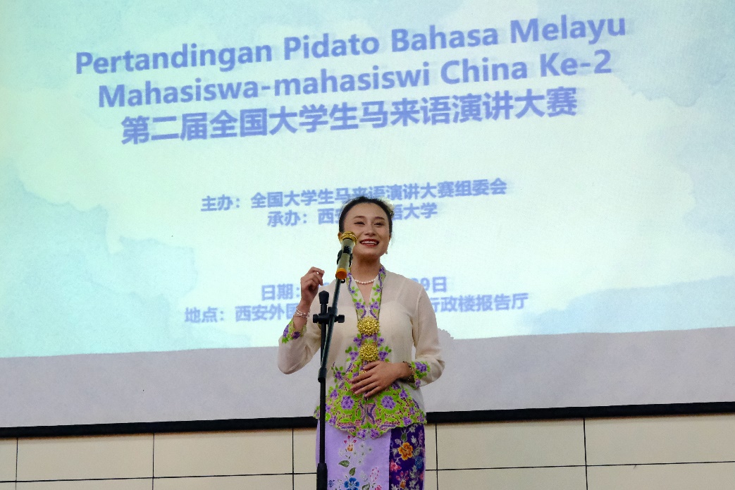全國大學(xué)生馬來語演講大賽,是國內(nèi)馬來語界最重要的大學(xué)生專業(yè)學(xué)科競(jìng)賽,2021年至今舉辦了兩屆,為全國各高校馬來語學(xué)子提供了寶貴的自我展示和成果分享的舞臺(tái)。本次大賽設(shè)低年級(jí)和高年級(jí)兩組,一共有來自13所高校的31名選手參賽。本次演講比賽主題為“用馬來語講中國故事”。廣外選派的3名選手立足粵港澳大灣區(qū),聯(lián)系中國與世界,分別從“新能源”、“茶文化”、“粵劇”等方面對(duì)“講好中國故事”這個(gè)宏偉命題進(jìn)行了精彩的詮釋與演繹。選手們發(fā)揮出色,聲情并茂地展示了自身語言能力與良好風(fēng)貌,獲得了在場(chǎng)評(píng)委和觀眾的一致好評(píng)。同學(xué)們的精彩表現(xiàn)與馬來語系專業(yè)教師的悉心指導(dǎo)密不可分,展現(xiàn)了廣外馬來語專業(yè)建設(shè)及人才培養(yǎng)的卓越成效。
