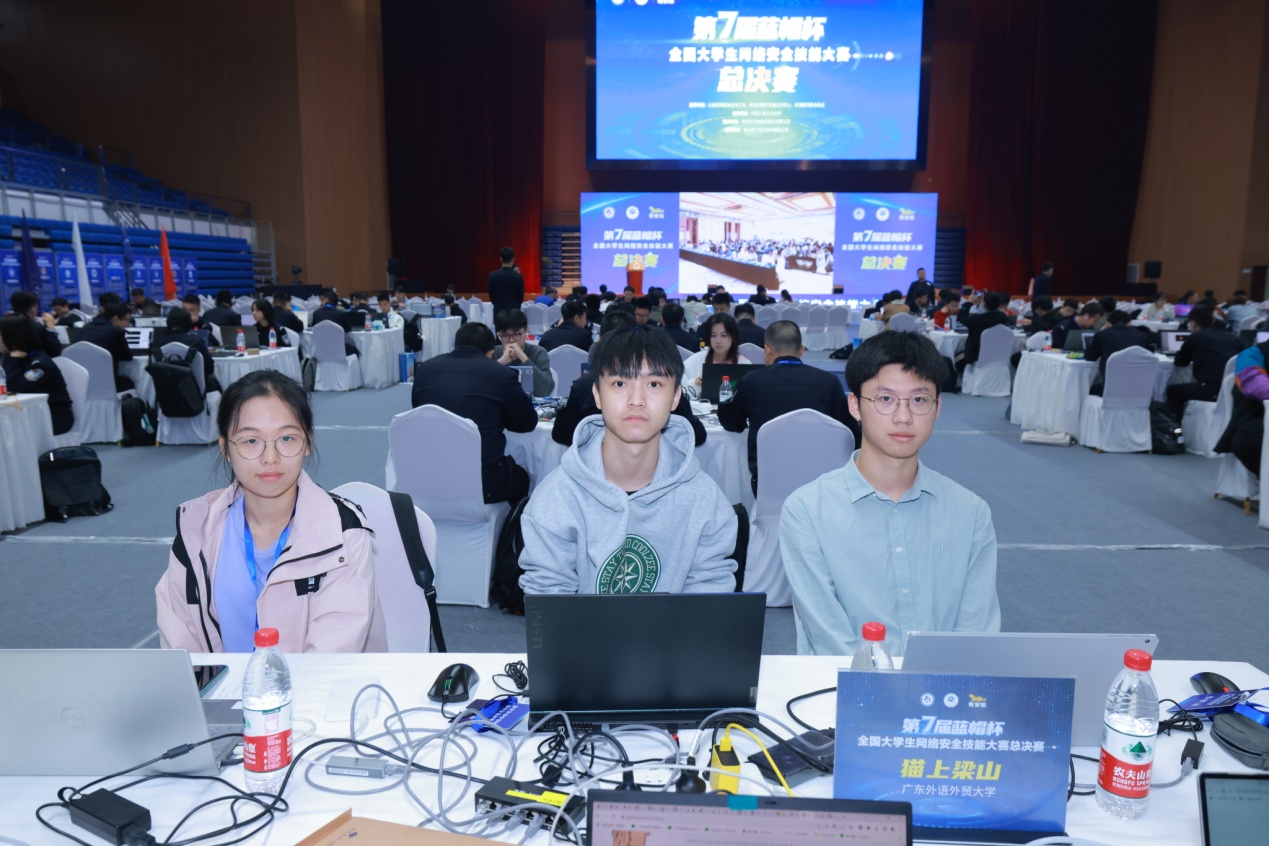 本網(wǎng)訊 10月29日,由公安部網(wǎng)絡(luò)安全保衛(wèi)局、教育部教育管理信息中心、中國教育協(xié)會指導(dǎo)的第七屆“藍帽杯”全國大學(xué)生網(wǎng)絡(luò)安全技能大賽決賽在中國人民公安大學(xué)圓滿收官。來自廣外信息科學(xué)與技術(shù)學(xué)院網(wǎng)安實驗室2021級本科生張裕凡、吳晨陽、張金純等三名同學(xué)組成的“貓上梁山”戰(zhàn)隊榮獲一等獎。