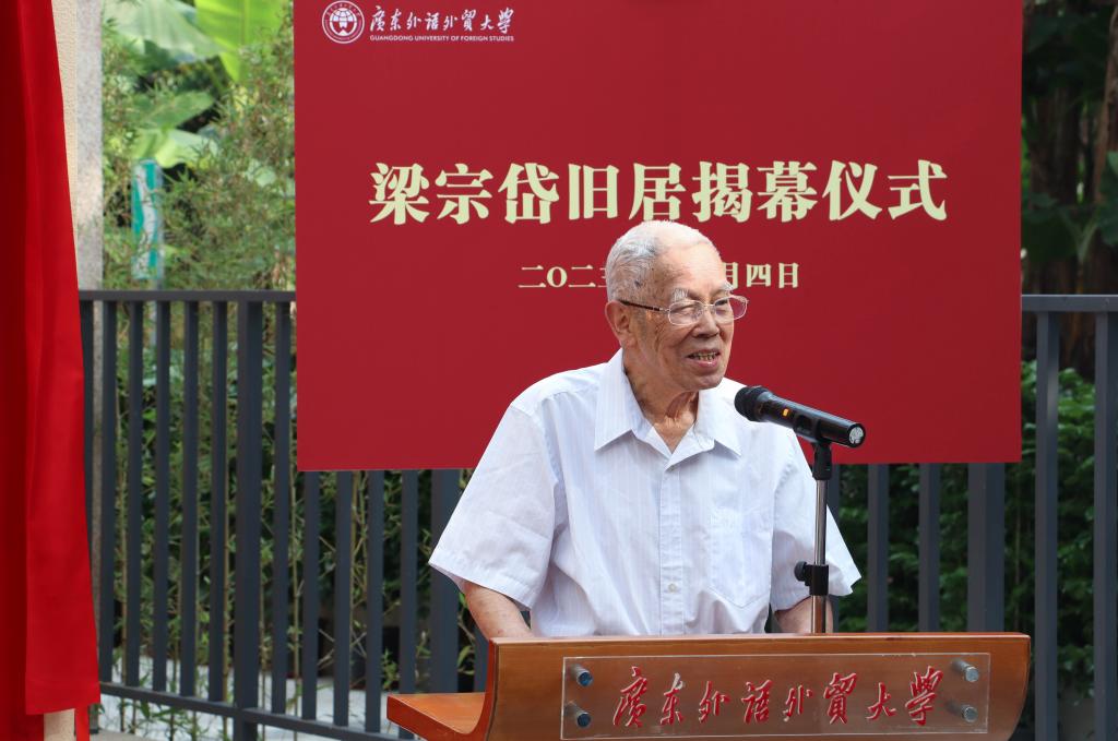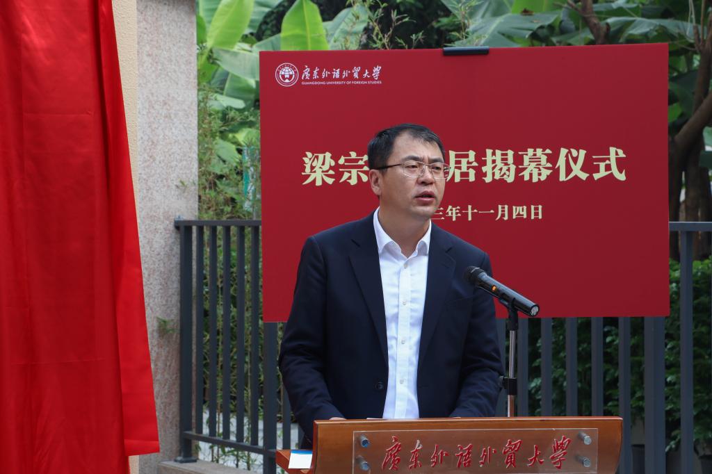 閆相斌在致辭中表示,在梁宗岱先生誕辰120周年之際,學校修復了位于云溪路10號的其曾經住過的舊居,為我們紀念梁宗岱先生增添了新的載體。紀念先賢,緬懷前輩,我們要繼往開來、賡續精神,在歷史傳承中汲取前進力量;要踔厲奮發、爭創一流,在時代征程中承擔光榮使命。始終牢記為黨育人、為國育才初心使命,砥礪前行,接續奮斗,不斷增強培養拔尖創新人才的責任感、高質量發展的緊迫感、服務國家戰略的使命感,加快推進國際化特色鮮明的高水平大學建設,為建設教育強國、文化強國作出新貢獻。