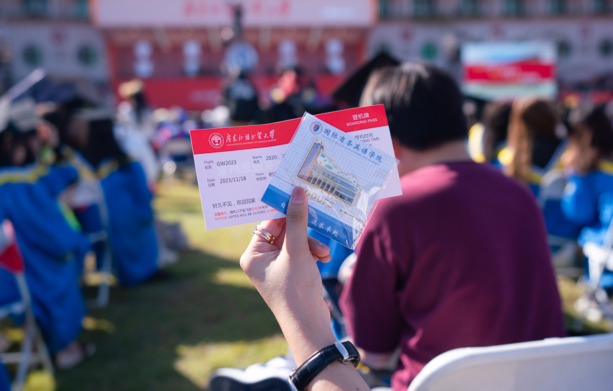 在儀式開始前,現場上演了舞獅表演、多語種歌曲《星辰大海》和青春快閃等節目,精彩的表演將現場氛圍不斷推向高潮。在儀式現場,石佑啟、閆相斌還為當天生日的同學送出廣外專屬生日禮物。在儀式的最后環節,全體在場人員共同祝福廣外生日快樂,全場合唱《我和我的祖國》,并進行全場大合照,共同期待再次相聚。