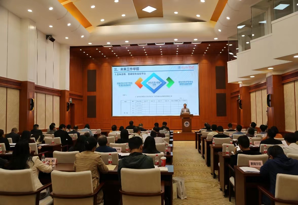 閆相斌指出,目前招生雖面臨嚴(yán)峻挑戰(zhàn),但我們要保持戰(zhàn)略定力,堅(jiān)定發(fā)展的信心、突圍的決心和實(shí)干的耐心,明確方向,走好自己的路。他強(qiáng)調(diào),要提高站位,深刻認(rèn)識(shí)國(guó)家和廣東深化高水平對(duì)外開(kāi)放給廣外帶來(lái)的特殊機(jī)遇,深刻認(rèn)識(shí)我們自身在專業(yè)內(nèi)涵建設(shè)和招生宣傳工作等方面存在的差距。他要求,全校各單位要共同努力,加大外省招生宣傳力度,做實(shí)做細(xì)省內(nèi)招生宣傳工作;要以創(chuàng)新為引領(lǐng),推進(jìn)專業(yè)優(yōu)化調(diào)整,促進(jìn)招生與專業(yè)發(fā)展的良性循環(huán);要優(yōu)化人才培養(yǎng)方案,推進(jìn)專業(yè)課程建設(shè);要深化國(guó)際合作,引領(lǐng)專業(yè)特色發(fā)展;要以需求為導(dǎo)向,優(yōu)化招生工作機(jī)制,提高招生精準(zhǔn)度、招生參與度和招生吸引度;要以效能為重點(diǎn),形成招生宣傳合力,增強(qiáng)宣傳增值效應(yīng)。