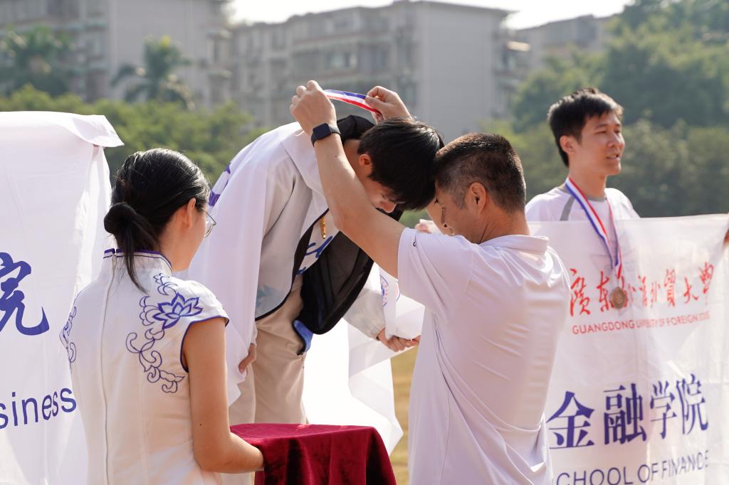 體育部副主任黃超群主持閉幕式。據(jù)悉,本次校運(yùn)會(huì)共設(shè)置34個(gè)競(jìng)賽項(xiàng)目,共有來(lái)自56個(gè)單位的900余名運(yùn)動(dòng)員、教練員參與其中。商學(xué)院劉同學(xué)激動(dòng)地說(shuō)道:“見證了商學(xué)院在校運(yùn)會(huì)上摘得團(tuán)體總分桂冠,我感到無(wú)比的激動(dòng)與自豪。團(tuán)體優(yōu)異成績(jī)的獲得離不開商學(xué)院田徑隊(duì)日復(fù)一日的訓(xùn)練,也是商學(xué)院的學(xué)子一步一步拼搏而來(lái)的,深深感受到了商學(xué)院燃燒的‘團(tuán)魂’。”來(lái)自金融學(xué)院的歐陽(yáng)同學(xué)表示,他在本次比賽中賽出了成果,更突破了自我。在本次比賽中打破男子素質(zhì)全能校運(yùn)會(huì)紀(jì)錄的他,表示將繼續(xù)努力,讓體育精神成為照亮人生的力量。