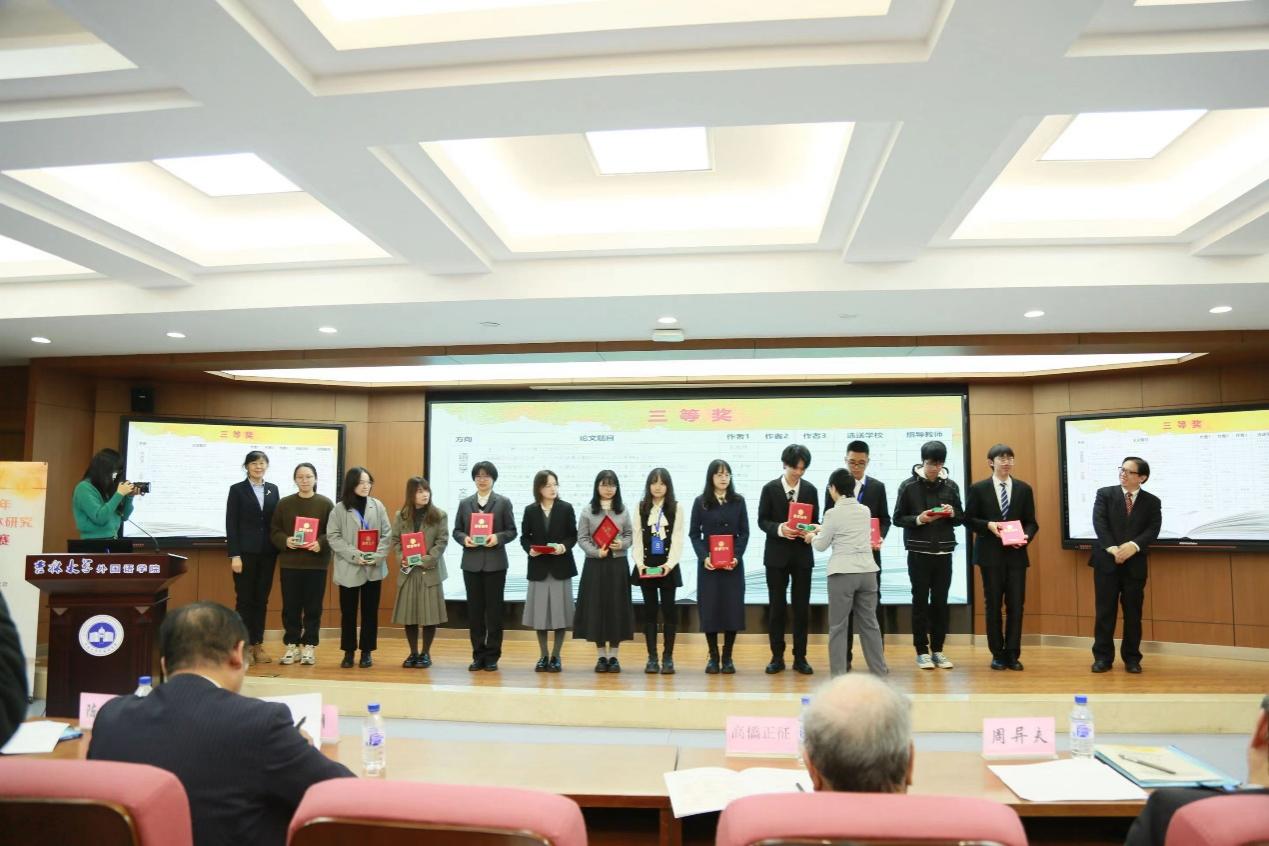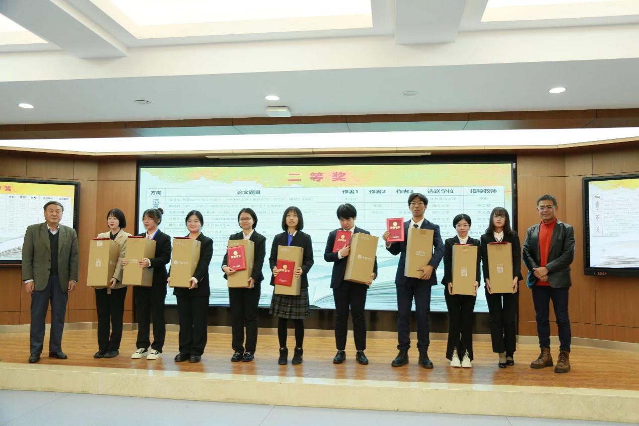 據悉,本屆大賽組委會共收到來自國內38所高校的140篇論文,其中語言學類30篇、文學類42篇、文化類68篇。經過嚴格公正的初審,每個方向各有10篇論文入圍決賽答辯。其中,語言學組評選出特等獎1名、一等獎1名、二等獎3名、三等獎4名;文學組評選出一等獎1名、二等獎3名、三等獎3名;文化組評選出特等獎1名、一等獎1名、二等獎3名、三等獎5名。