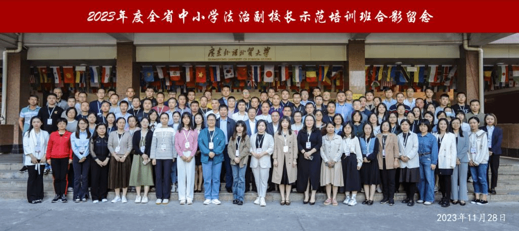 此次培訓班得到了廣東省教育廳和廣東外語外貿大學高度重視,課程設置經過省教育廳和青少年法治教育中心反復商討確定,并得到了省高院、省檢察院、省公安廳、省司法廳等單位的大力支持。培訓班課程內容涵蓋習近平法治思想、法治副校長管理制度、家庭教育促進法解讀、青少年心理教育、語言表達等專題,并設有工作經驗介紹、實地參觀學習,學員交流等環節。授課教師是來自省內外各領域理論和實踐經驗豐富的知名專家,學員們認真聽講,積極交流學習心得,教學效果良好,反響強烈。培訓班的順利舉辦,為進一步推動全省青少年法治教育工作開展,學校提高依法治校能力和法治化水平具有積極意義。
