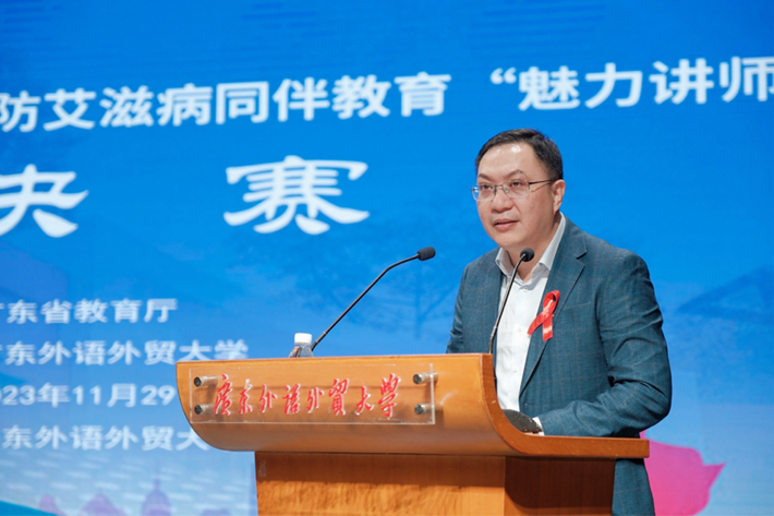 本網(wǎng)訊 11月29日,廣東省第九屆大學(xué)生預(yù)防艾滋病同伴教育“魅力講師”比賽決賽在我校白云山校區(qū)六教報(bào)告廳舉辦。本次比賽由廣東省教育廳主辦,我校承辦,廣東省疾病預(yù)防控制中心、廣東省性病艾滋病防治協(xié)會(huì)、廣東省性病艾滋病防治協(xié)會(huì)高校分會(huì)、嶺南伙伴社區(qū)主持中心協(xié)辦。我校副校長(zhǎng)劉海春,廣東省教育廳體育衛(wèi)生與藝術(shù)教育處處長(zhǎng)陳健生在會(huì)上致辭。賽事由廣東省青少年性健康友好服務(wù)平臺(tái)視頻號(hào)全程直播。