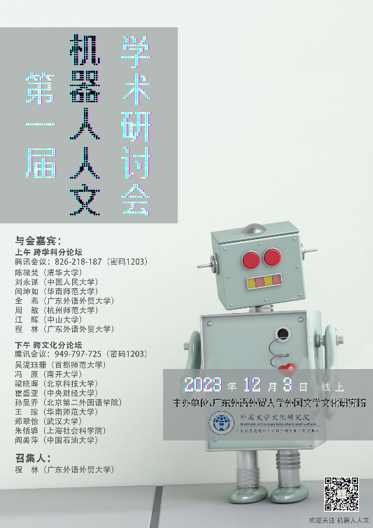 本網(wǎng)訊 12月3日,第一屆機器人人文學(xué)術(shù)研討會線上召開。本次研討會由我校外國文學(xué)文化研究院主辦,副校長何傳添為會議致開幕辭,外國文學(xué)文化研究院副院長劉茂生主持開幕式。