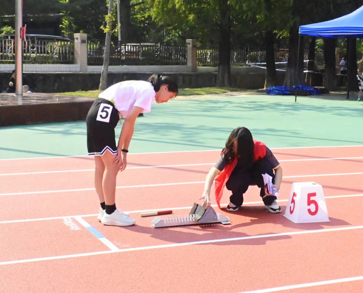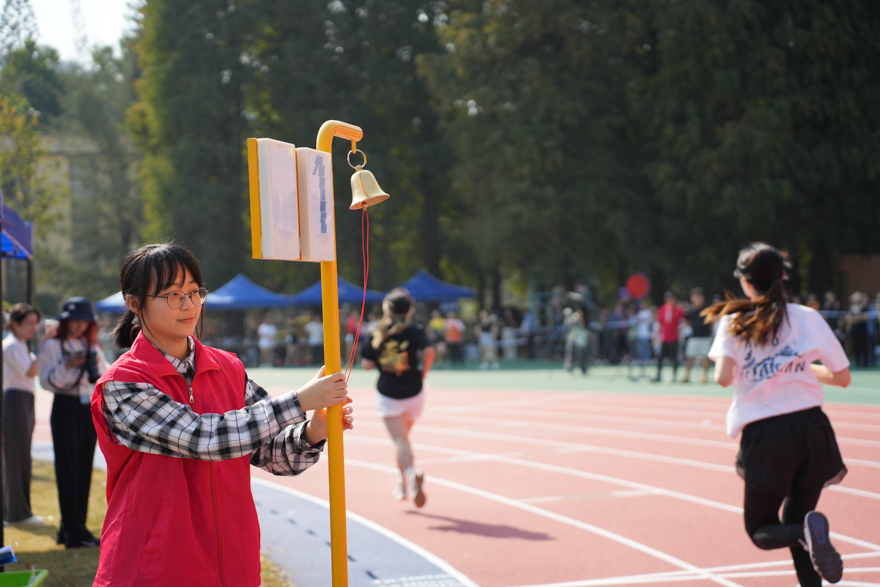 掌聲不止屬于參賽者,還屬于操場上那抹獨(dú)特的“紅”——穿著紅色馬甲的志愿者也同樣奔跑在運(yùn)動(dòng)場上,維持著比賽秩序。徑賽的志愿者們?cè)谂艿郎霞?xì)心確認(rèn)著選手們的位置,田賽的志愿者們插起小旗子,用卷尺仔細(xì)測量運(yùn)動(dòng)員們的成績。為比賽的順利進(jìn)行保駕護(hù)航。作為徑賽發(fā)令組的志愿者,來自西語學(xué)院的徐昕嵐,在做好本職工作的同時(shí),還會(huì)在賽前為每位運(yùn)動(dòng)員都送上自己的暖心祝福與鼓勵(lì)。當(dāng)運(yùn)動(dòng)員們邁過終點(diǎn)線后,她會(huì)遞過一瓶水為他們祝賀;當(dāng)有運(yùn)動(dòng)員累倒時(shí),徐昕嵐會(huì)立馬奔過去,攙扶他們?nèi)バ菹ⅰU劶按伺e的原因,徐昕嵐有些羞澀,“因?yàn)樽约涸谶^往的比賽中接受過別人的鼓勵(lì),現(xiàn)在也想以同樣的方式將鼓勵(lì)傳遞出去,為運(yùn)動(dòng)員加油鼓勁。”