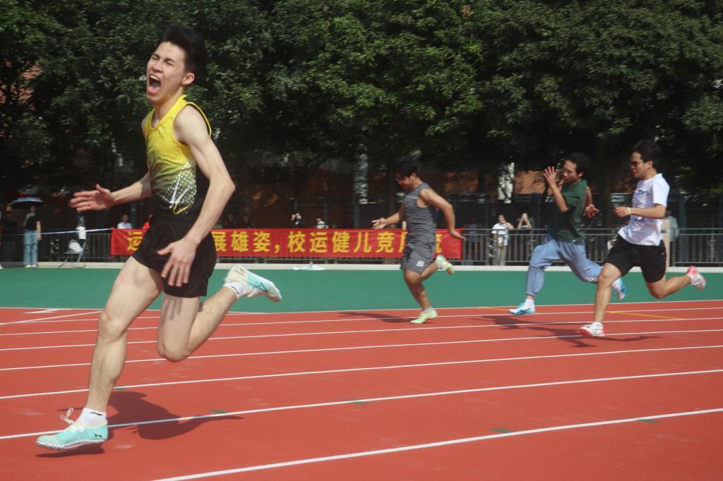 明媚的陽光穿過云層,大片大片地鋪在綠茵操場之上。煥然一新的運(yùn)動(dòng)場,拉開了競技比賽的新序幕。廣外教工與學(xué)子們秉持著“不‘破’不立”的精神,在運(yùn)動(dòng)場上各顯神通。在學(xué)生組男子100米初賽,就有四位選手打破此項(xiàng)的最高記錄。這一消息霎時(shí)傳遍整個(gè)賽場,讓觀眾們對(duì)決賽翹首以盼。20毫秒有多長?300毫秒你眨了一下眼睛,120毫秒是人類視覺反應(yīng)的極限。在男子學(xué)生組100米決賽的賽場上,來自商學(xué)院的陳子楊與公開學(xué)院的楊錦霖上演了一場20毫秒的精彩決斗。