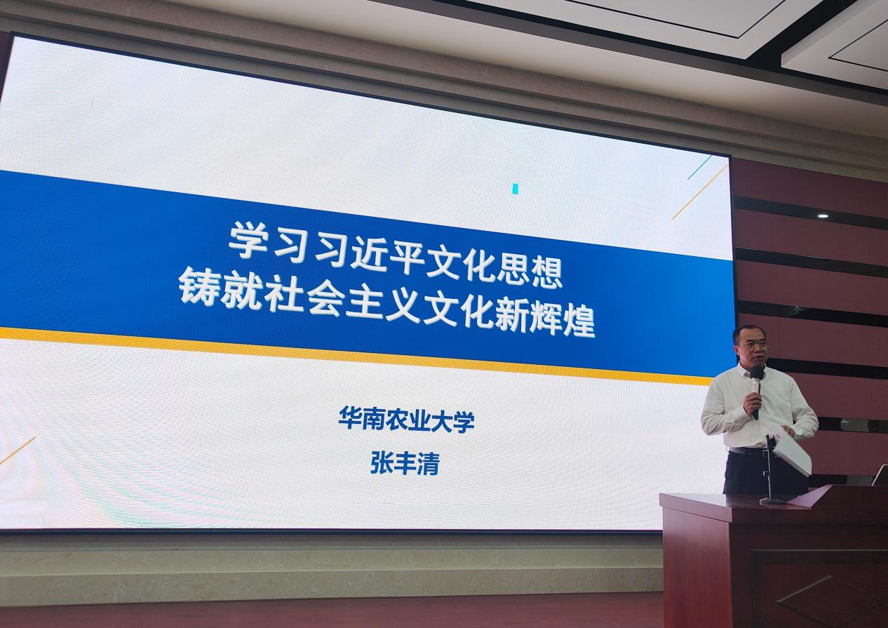 本網訊 12月7日下午,學校黨委舉辦第一期黨員素質提升大講堂,邀請華南農業大學馬克思主義學院院長張豐清教授作“習近平文化思想”專題講座,學校200余名師生黨員參加學習。
