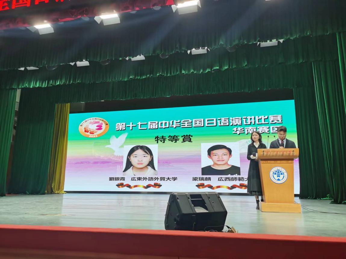 大賽分命題演講和即興演講兩個模塊舉行。30位選手各勝擅場,分別以流暢純正的日語口語能力及生動的表現力,熱情洋溢地詮釋自己的觀點與見解,生動地體現了當代大學生的精神風貌,贏得了評審專家的高度評價。經過兩輪激烈角逐,我校劉銀霞和廣西師范大學梁瑞麟榮獲特等獎,福建師范大學曾欣悅榮獲一等獎,廈門大學施心蘭等5名同學榮獲二等獎,華南農業大學蘇甲等22名同學榮獲三等獎。劉銀霞和梁瑞麟將代表華南賽區參加明年3月于日本東京舉辦的決賽。
