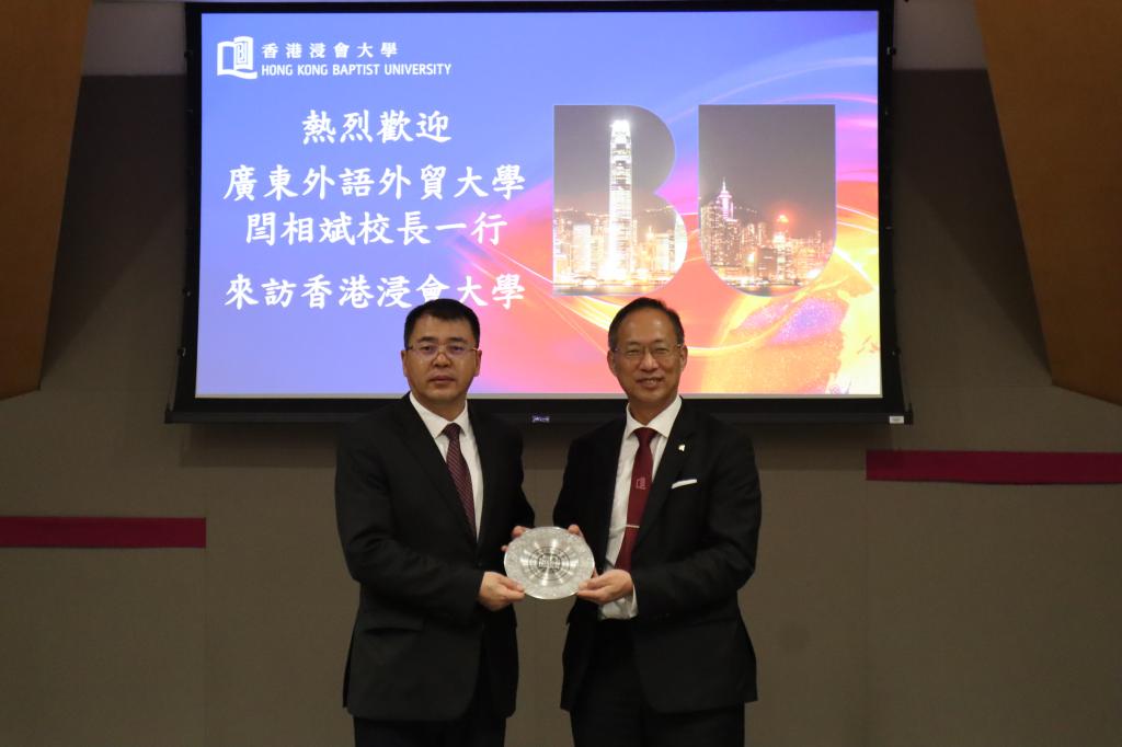 香港浸會大學校長衛炳江向閆相斌贈送紀念品