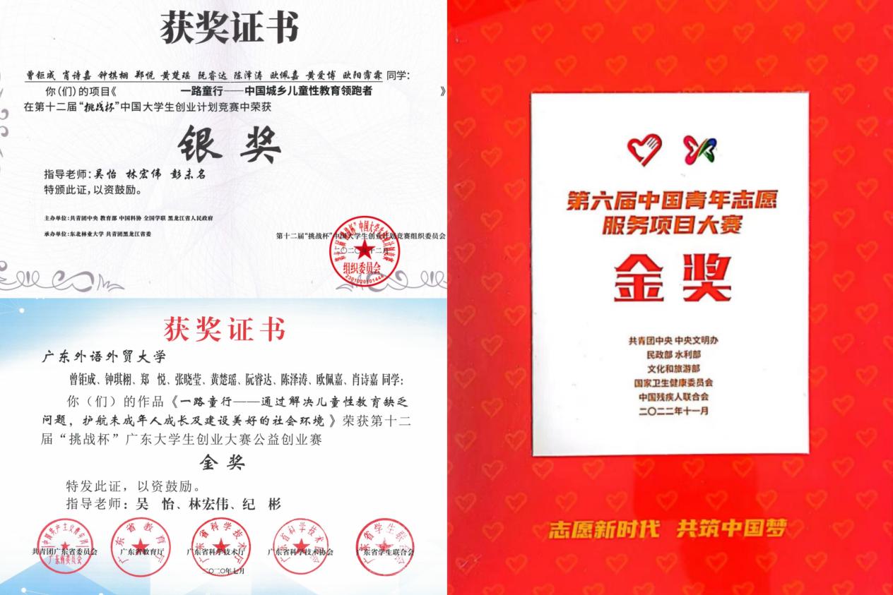 六年來,項(xiàng)目榮獲第六屆中國(guó)志愿服務(wù)項(xiàng)目大賽金獎(jiǎng)、“挑戰(zhàn)杯”中國(guó)大學(xué)生創(chuàng)業(yè)計(jì)劃競(jìng)賽銀獎(jiǎng)、團(tuán)中央“七彩四點(diǎn)半”志愿服務(wù)示范團(tuán)隊(duì)、“挑戰(zhàn)杯”廣東大學(xué)生創(chuàng)業(yè)計(jì)劃競(jìng)賽金獎(jiǎng)、中國(guó)國(guó)際“互聯(lián)網(wǎng)+”大學(xué)生創(chuàng)新創(chuàng)業(yè)大賽廣東省分賽銀獎(jiǎng)、廣東省“益苗計(jì)劃”重點(diǎn)培育項(xiàng)目等數(shù)十項(xiàng)國(guó)家級(jí)、省級(jí)獎(jiǎng)項(xiàng)。項(xiàng)目先后被共青團(tuán)中央、中國(guó)青年志愿者、中國(guó)青年網(wǎng)、廣東志愿者、廣東電視臺(tái)等多家主流媒體的宣傳報(bào)道,獲得了社會(huì)各界的廣泛好評(píng)。