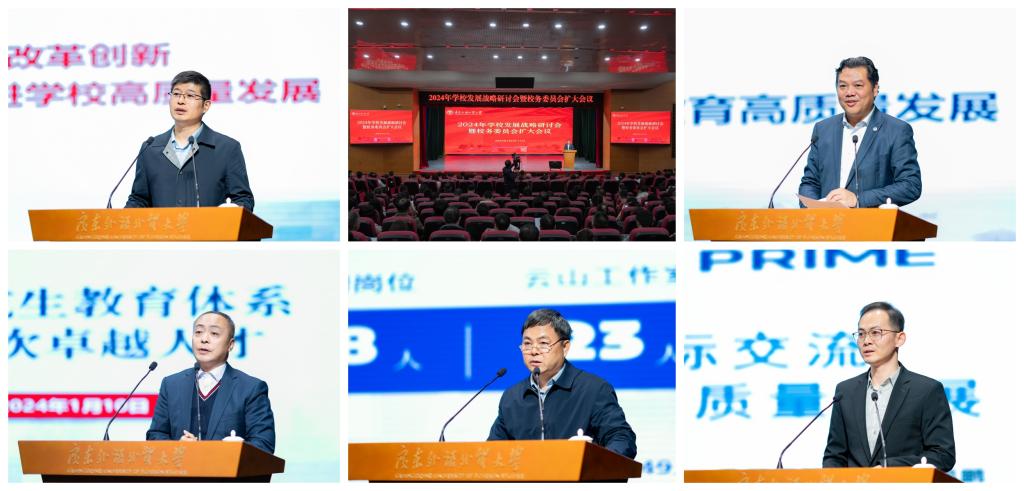 石佑啟在作總結講話時指出,學校召開2024年發展戰略研討會,思考學校的發展方向、戰略定位、推進舉措等重大問題,對推動學校改革創新、深化內涵建設,具有十分重要的意義。各單位要緊盯目標抓落實,聚焦短板謀突破,擔當作為求實效,奮力推動學校事業高質量發展。一是堅定信心,增強高質量發展的定力。近幾年學校全面推進高水平大學建設和外語學科“沖一流”,各項事業穩步發展,呈現出良好的發展態勢,肯定成績是為了更好地堅定信心、自信自強、守正創新。二是鼓足干勁,激發高質量發展的動力。各單位要堅持把高質量發展作為工作的生命線,加快建設高質量教育體系,著力激活改革、開放、創新“三大動力”,推動學校高質量發展實現新躍升。三是振奮精神,凝聚高質量發展的合力。各單位要發揚“拼”的精神,以“咬定青山不放松”的韌勁去拼,以“越是艱險越向前”的勇氣去拼,以“不待揚鞭自奮蹄”的自覺去拼,全力加快國際化特色鮮明的高水平大學建設進程,以更加務實的行動回答好“強國建設,廣外何為”的時代問卷。
