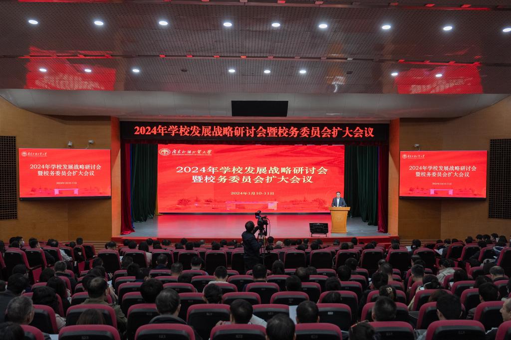 本網訊 1月10日至11日,學校在白云山校區六教報告廳召開2024年學校發展戰略研討會暨校務委員會擴大會議,研討學校事業實現高質量發展的方向和路徑。校黨委書記石佑啟主持會議并作總結講話,校長閆相斌以“求新思變 聚勢而為 奮力開創學校事業高質量發展新局面”為題作主題報告。校領導、校務委員、校學術委員會委員、全校副處職(級)以上干部、系(部)主任代表,各教學、科研、教輔單位辦公室主任,黨政群部門科長參加會議。