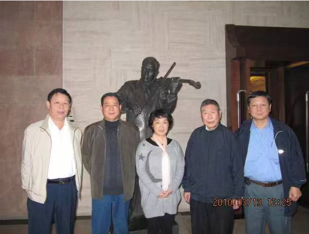 魯大錚(左二)在馬思聰音樂藝術館與馬思聰兒子馬如龍(右二)、