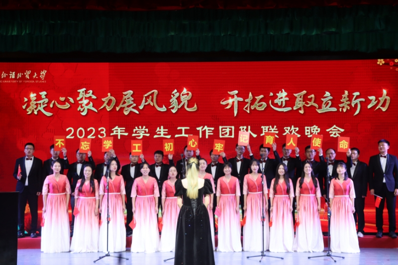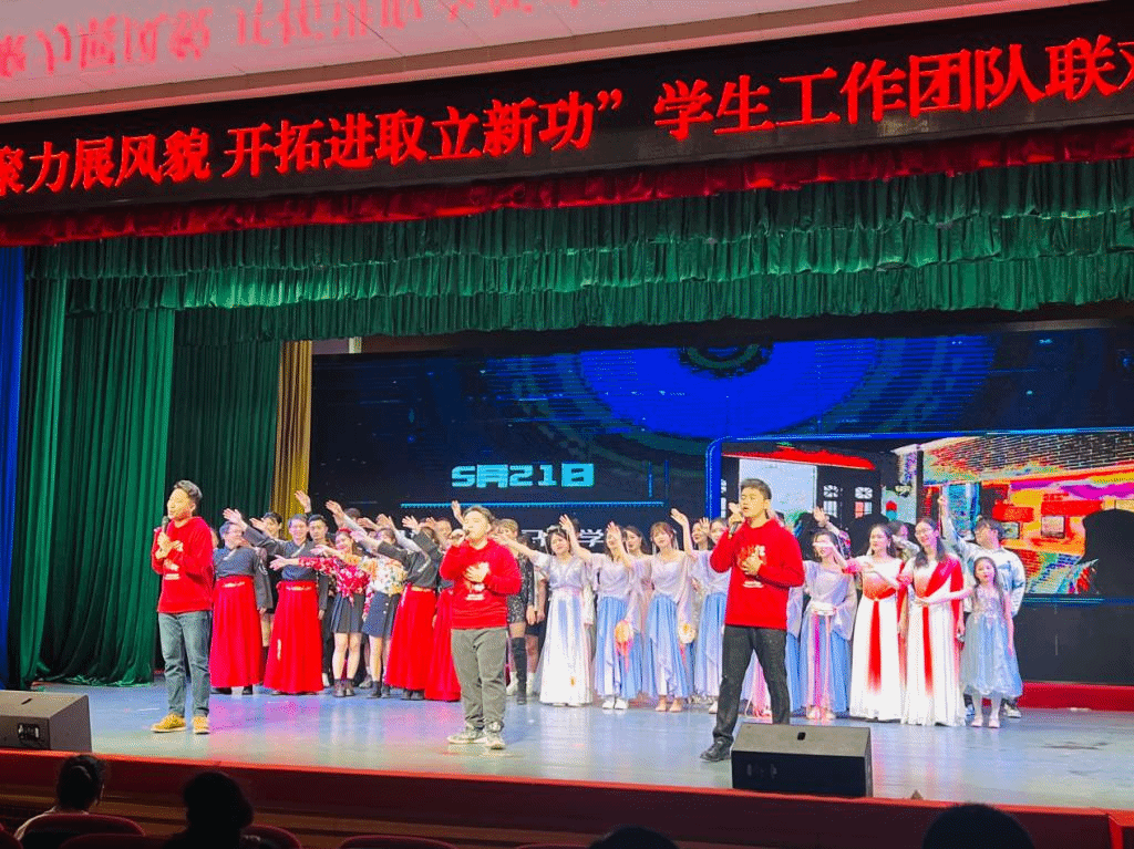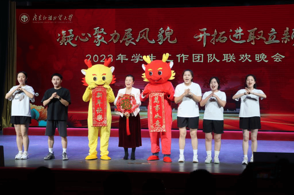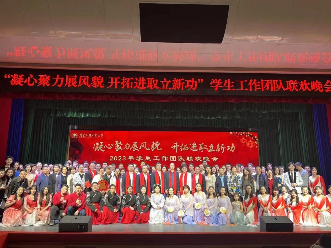 本網(wǎng)訊 為增強我校學(xué)生工作團隊活力,展現(xiàn)我校學(xué)工隊伍新年新氣象、新風(fēng)貌,近日,2023年學(xué)生工作團隊聯(lián)歡晚會在白云山校區(qū)六教報告廳精彩上演,學(xué)生工作部、校團委、學(xué)生就業(yè)創(chuàng)業(yè)中心全體人員,各學(xué)院學(xué)生工作負責(zé)人,全體輔導(dǎo)員,歡聚一堂,集體登臺,喜迎新春。