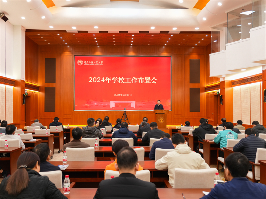 本網(wǎng)訊 2月29日,我校在行政樓國際會議廳召開2024年學(xué)校工作布置會。校黨委書記石佑啟部署學(xué)校2024年度重點工作。校領(lǐng)導(dǎo),中層領(lǐng)導(dǎo)人員等參加會議。