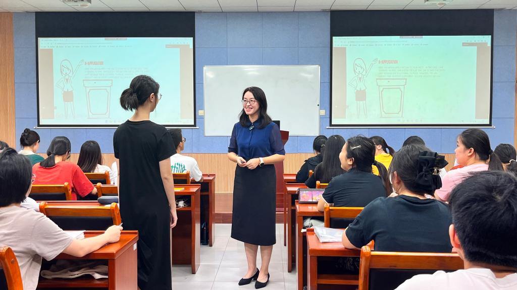 “‘愛(ài)生如子’是作為老師很重要的品質(zhì)。”曾丹談到。學(xué)期伊始,她會(huì)邀請(qǐng)學(xué)生們一起制定屬于自己的“小目標(biāo)”。當(dāng)學(xué)生在學(xué)習(xí)中遇到困難產(chǎn)生懈怠時(shí),她在課堂上結(jié)合語(yǔ)言學(xué)習(xí)給學(xué)生打氣,讓學(xué)生“親其師”“信其道”。同學(xué)們提起曾老師,都笑著說(shuō)她像媽媽一樣體貼柔和,讓學(xué)生都感到無(wú)比溫暖。