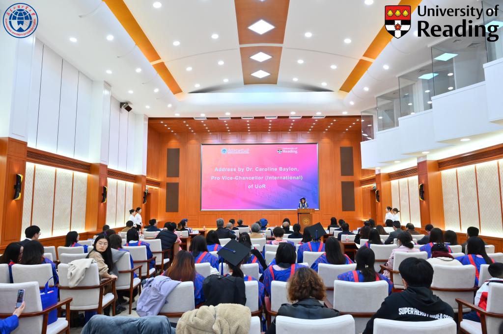 雷丁大學教育學院研究生部主任麗貝卡·伯克利(Rebecca Berkley)熱情洋溢地祝賀學生們取得的卓越成就。英文學院院長張欣衷心感謝英國雷丁大學李大國教授以及雙方團隊的卓越貢獻和不懈努力。慶典由英文學院副院長劉胡敏主持,她回顧了過去十年合作成果,展望了未來發展路徑。