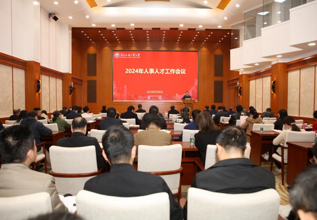 本網訊 3月8日上午,我校2024年人事人才工作會議在白云山校區國際會議廳舉行。校黨委書記石佑啟、校長閆相斌、副校長申明浩,各教學單位院長(主任)、書記,黨政群部門、科研單位、教輔機構主要負責人,以及人力資源部(教師發展中心)全體工作人員等參加會議。會議由閆相斌主持。