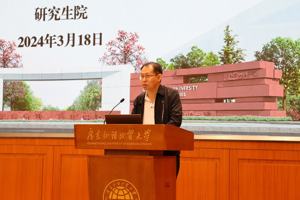 研究生院院長楊勵從學位授權體系優化、研究生生源質量提升、高質量創新成果產出、“多語種+”復合型人才培養、國際化人才培養集群建設、導師崗位管理強化和研究生人才培養體系完善等七個方面總結回顧了2023年研究生教育工作。同時,2024年學校將從五個方面著力推進研究生教育高質量發展:一是因應需求,扎實推進學位點建設高質量發展;二是深化改革,健全多元化招生選拔機制;三是加大力度,建設高質量研究生人才培養體系;四是擴大合作,推進研究生國際化項目向縱深發展;五是立德樹人,著力構建卓越研究生導師隊伍。此外,針對即將開展的2024年碩士研究生復試工作進行了布置。