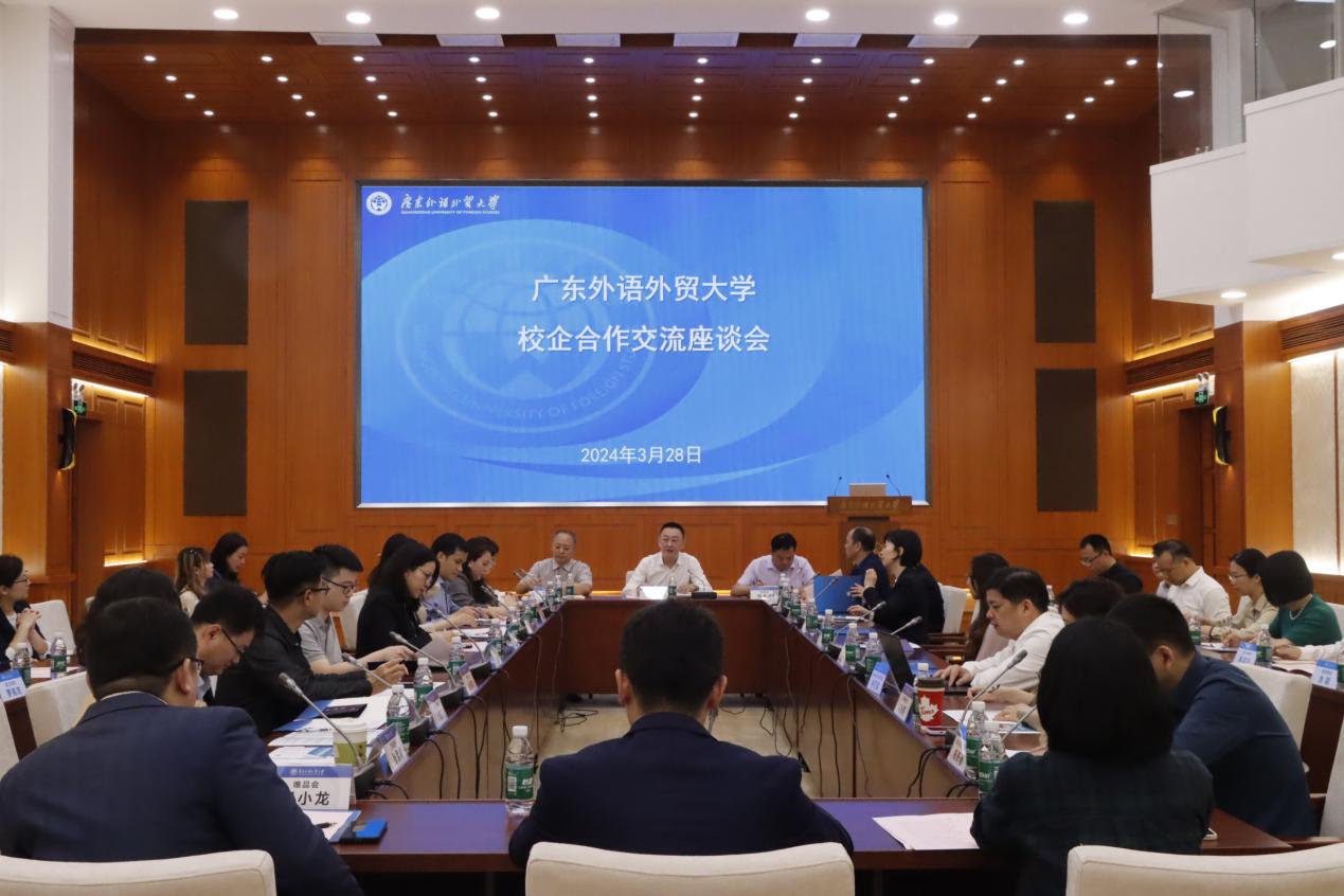 又訊 3月28日上午,我校在白云山校區(qū)國(guó)際會(huì)議廳舉辦廣東外語(yǔ)外貿(mào)大學(xué)校企合作交流座談會(huì)。校黨委副書(shū)記唐銳出席座談會(huì)。此次座談會(huì)邀請(qǐng)了工商銀行、普華永道、比亞迪、美的集團(tuán)等25家企業(yè)代表,各企業(yè)代表圍繞企業(yè)用人需求、我校畢業(yè)生在企業(yè)表現(xiàn)情況、如何深化校企合作,以及對(duì)學(xué)校人才培養(yǎng)和學(xué)科專業(yè)建設(shè)的意見(jiàn)建議等展開(kāi)交流座談。