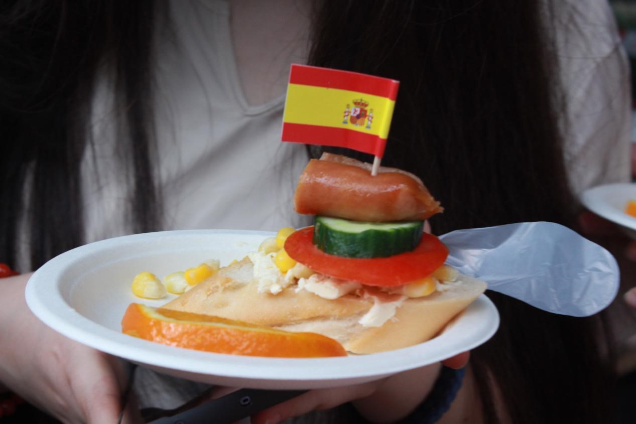 美食節(jié)——塔希提集市上遍布西語學(xué)院各語系學(xué)子精心準(zhǔn)備的歐洲各國特色美食:香氣四溢的俄羅斯列巴和紅腸、西班牙的桑格利亞酒和火腿、葡萄牙的豬扒包和葡萄酒、意大利的意式千層酥和奶油意面等美食齊聚一堂,讓師生們不出校門便能品嘗到地道的歐洲風(fēng)味。這不僅是一次味蕾的盛宴,更是一次文化的交流與碰撞。