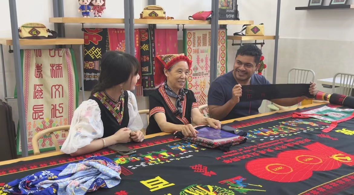 作為乳源當地非遺文化代表之一,瑤繡具有重大的科學、實用和藝術價值。然而,隨著當地勞動力的流失,加上瑤繡繡法多變難以上手,手工刺繡服飾因其耗時耗力和價格較高難以銷售等因素,瑤繡技藝面臨著失傳的困境。為了讓瑤繡重新“走出來”,實踐隊邀請了墨西哥留學生張睿墨拍攝瑤繡視頻《您的瑤繡體驗官——成就大挑戰》。在拍攝過程中,張睿墨以挑戰任務的形式,用瑤語自我介紹,參觀世界過山瑤博物館以及體驗瑤繡特色“反面繡”。他流利的中文,溫暖的笑容,還有視頻最后的那一句瑤語的“我愛乳源”讓實踐隊會心一笑。相關國際體驗官作品成果在國際在線、南方英文網等平臺發布,這是青年在青山間留下的特殊足跡。